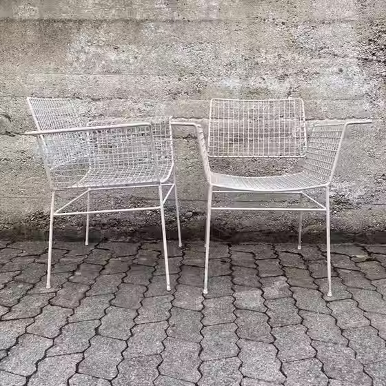 weiß lackierter drahtstuhl von erlau, original aus den 1960er jahren. ideal für innen- oder außenbereich.